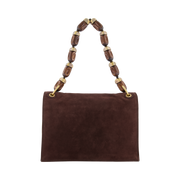 Yves Saint Laurent Left Bank by Tom Ford Bag in cocoa suede lambskin with five gussets, magnetic snap closure on flap, exterior pocket, handle of wooden beads topped with gilt metal featuring tassels. Perfect condition.